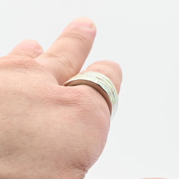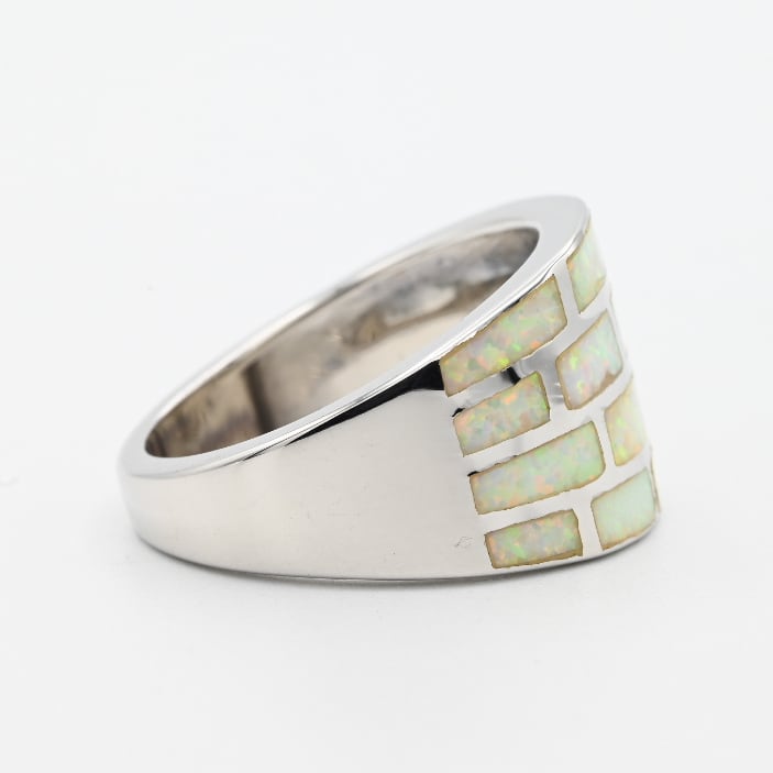 White Opal Inlay Gorgeous Wide Tapered Ring #17.0 / Denmark