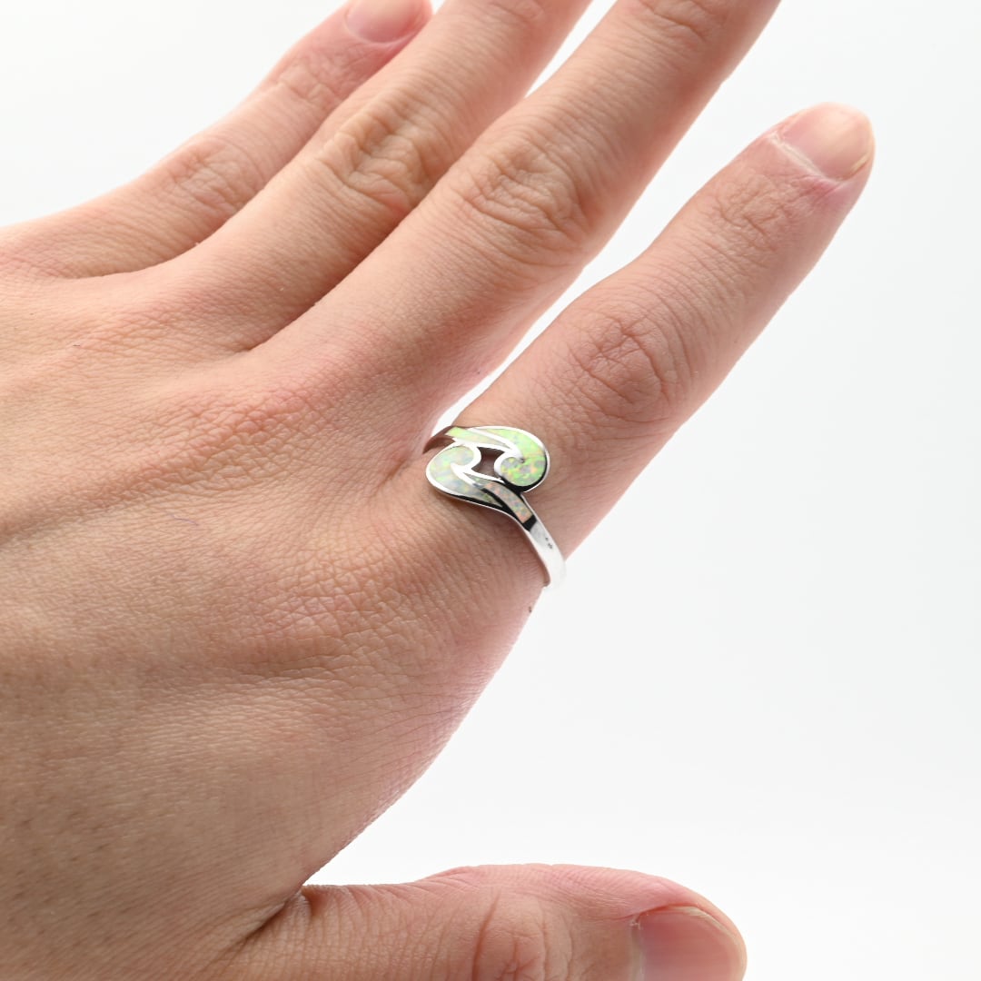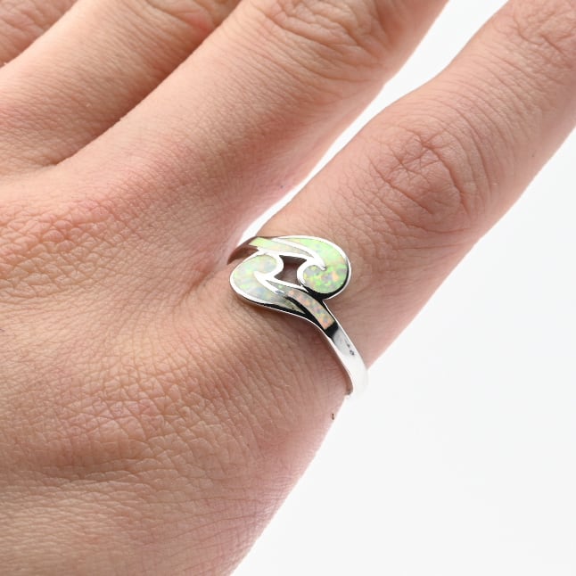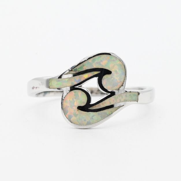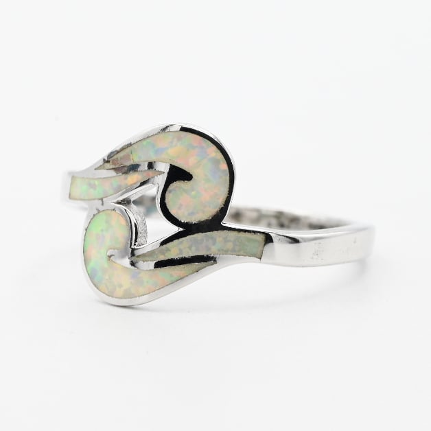 White Opal Inlay Swirl Design Top Ring #18.0 / Denmark