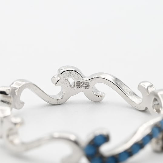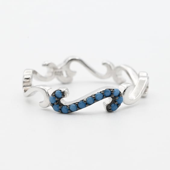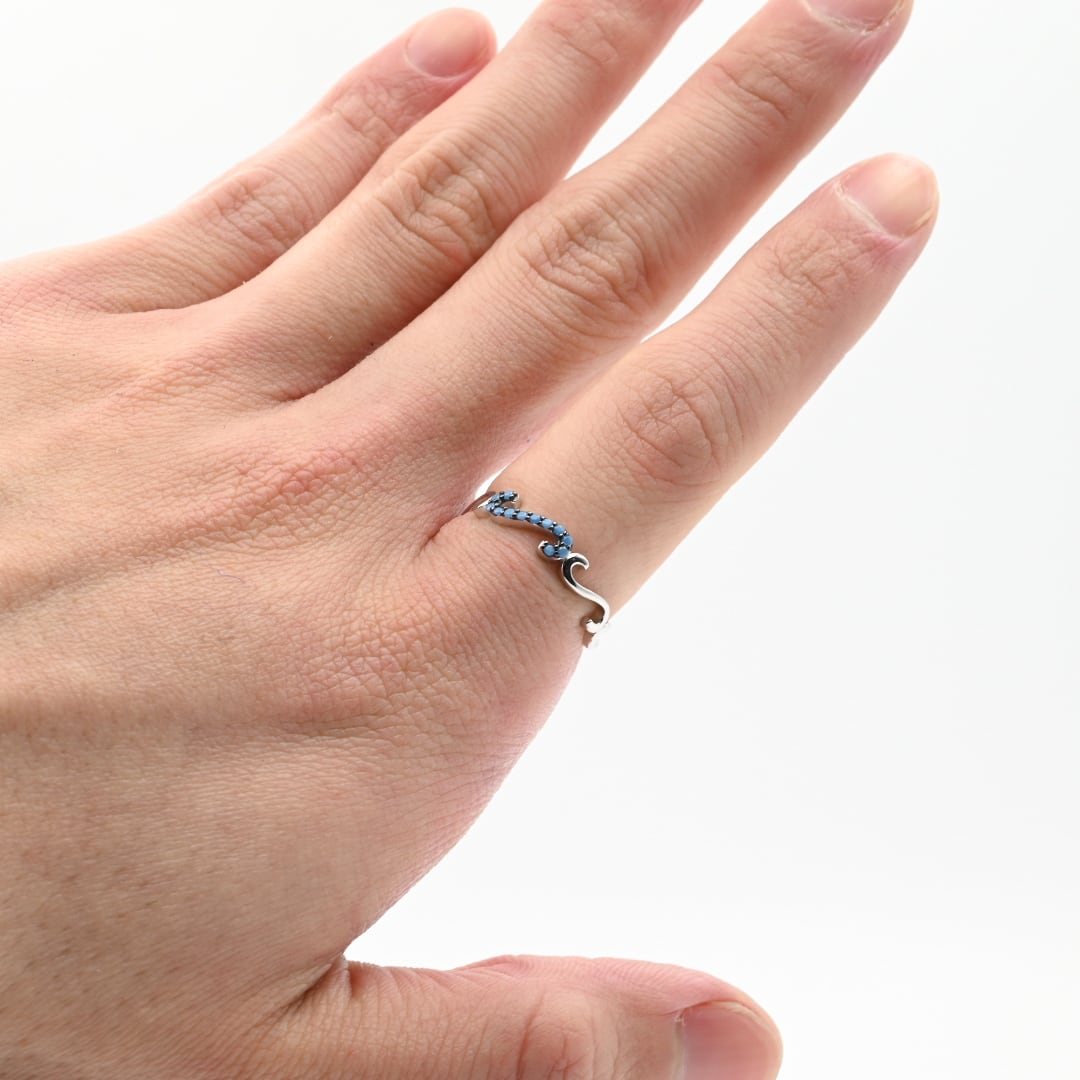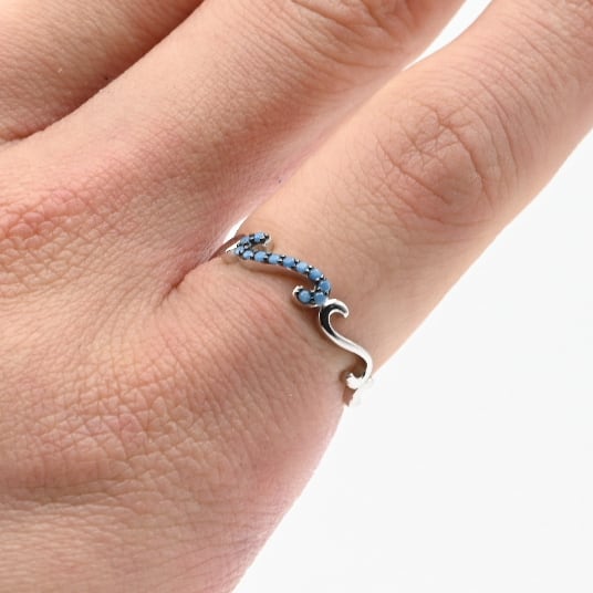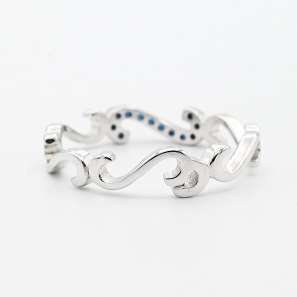 繊細な雰囲気を纏う波状のフォルムと、トップに配された濃青のスタッズアクセントが目を惹くアイテム。