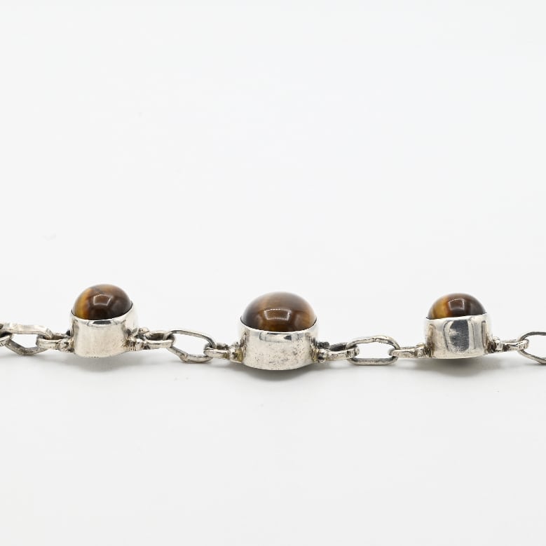 Rounded Golden Tiger Eye Accent Panel Link Bracelet / Denmark