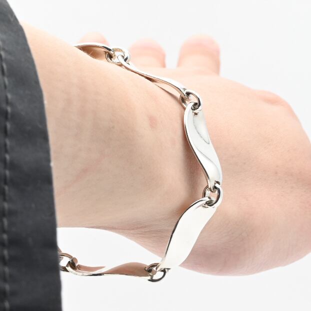 Sophisticated Curvy Panel Design Link Bracelet / Denmark