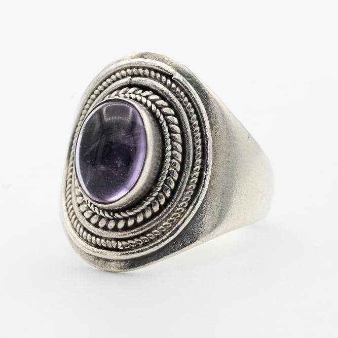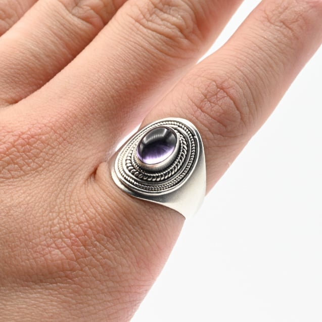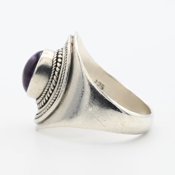 Amethyst Top Dainty Cable Accent Signet Ring #16.0 / Denmark