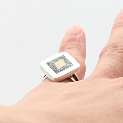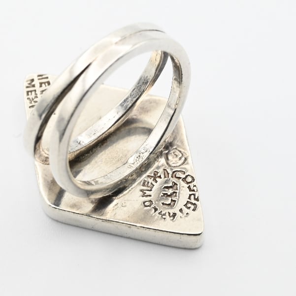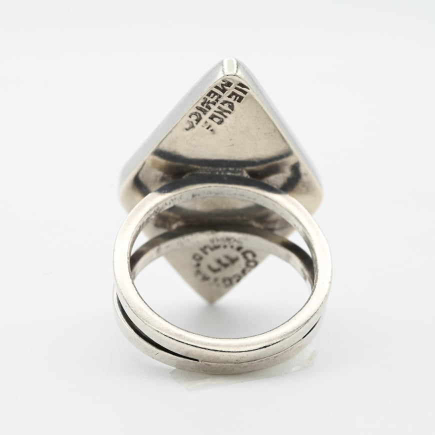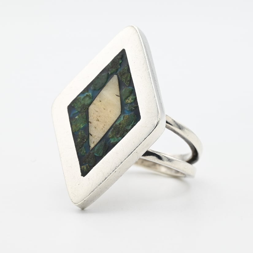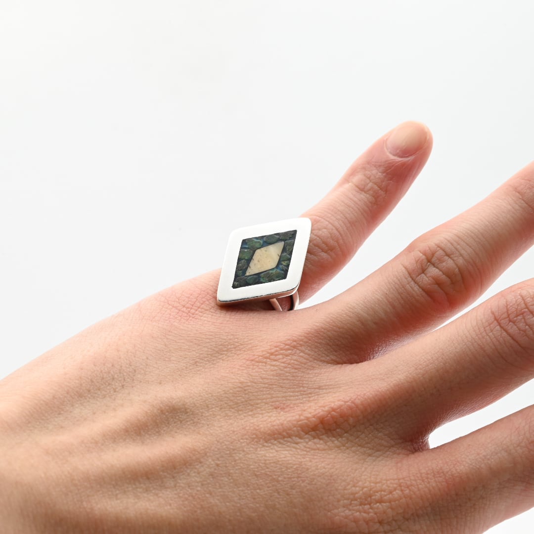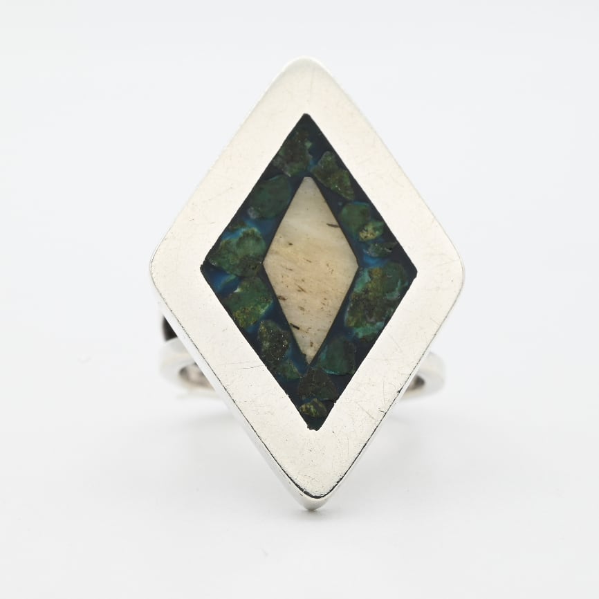 Crushed Turquoise / White Agate Inlay Rhombus Statement Ring #10.5 / Mexico