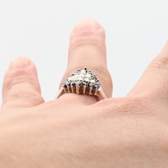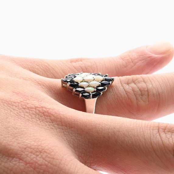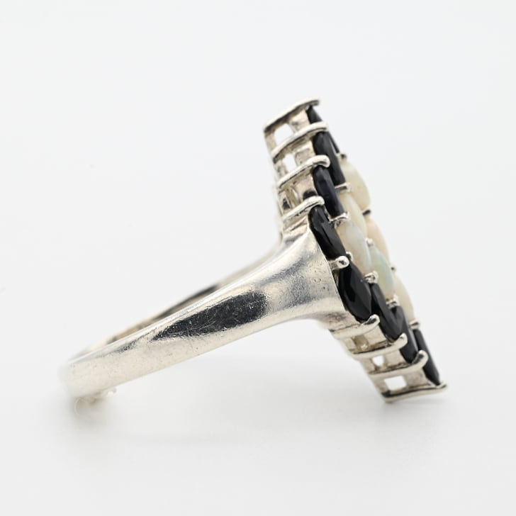Black Sapphire / White Opal Accent Graceful Statement Ring #13.5 / Thailand