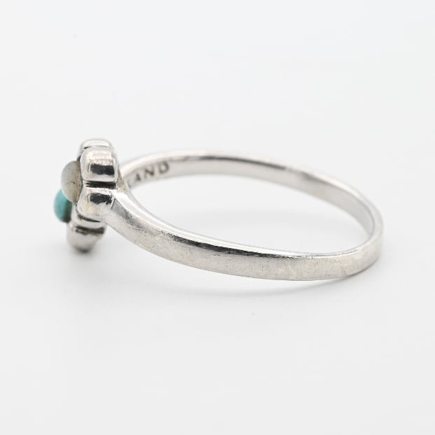 Turquoise / Mother Of Pearl Accent Flower Motif Ring #13.5 / Thailand