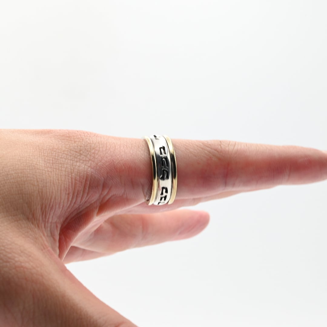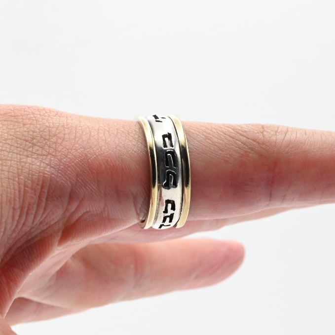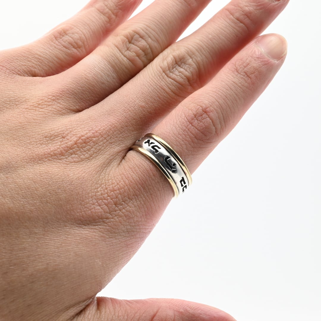18K Gold Accent Lettering Design Band Ring #19.5 / Denmark