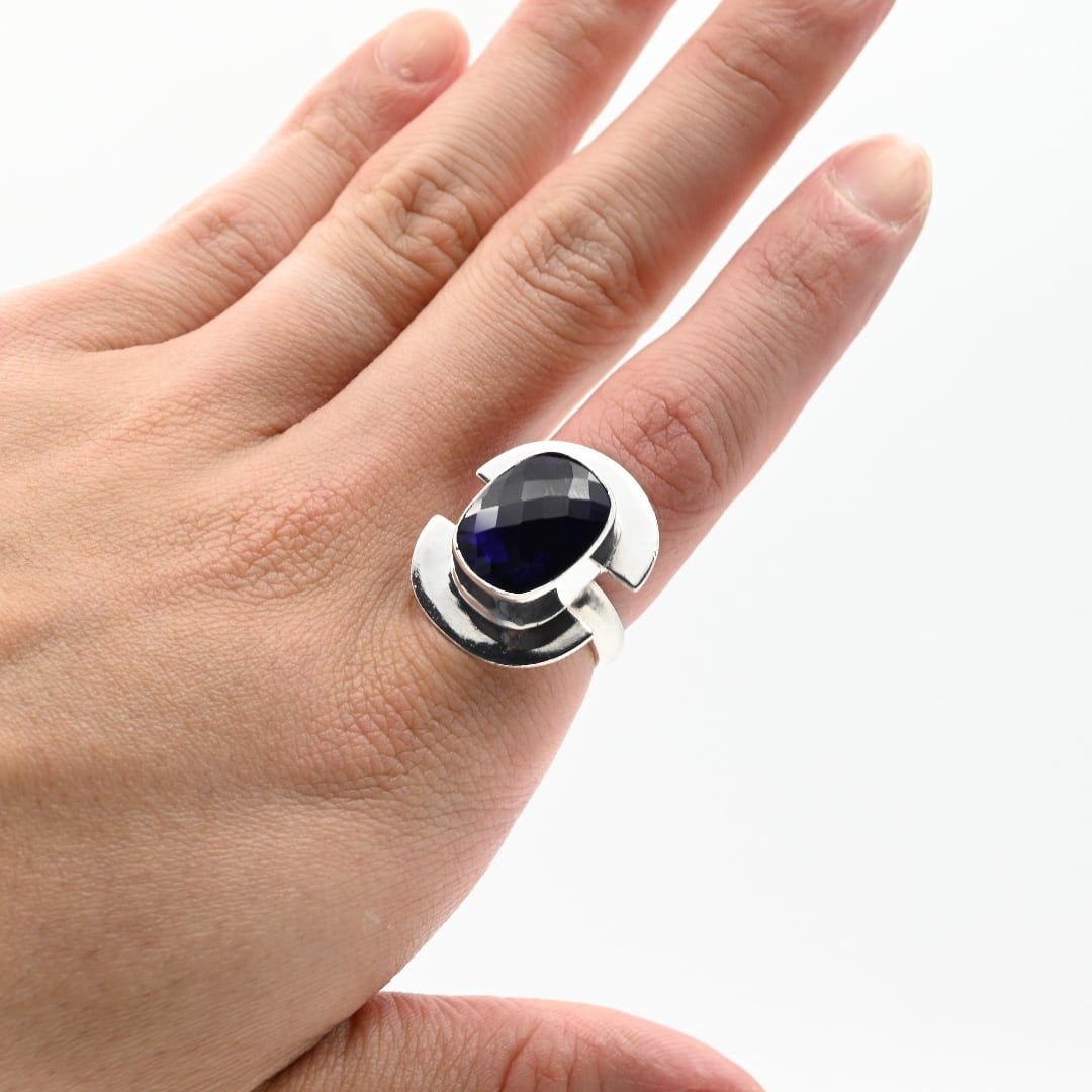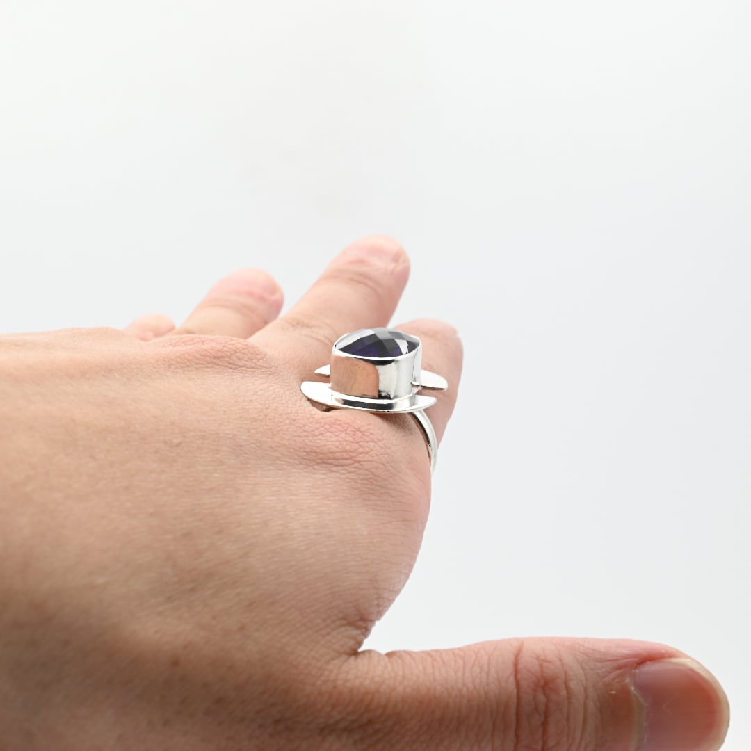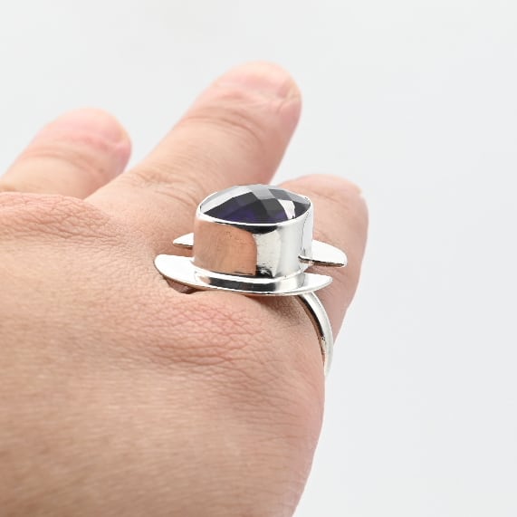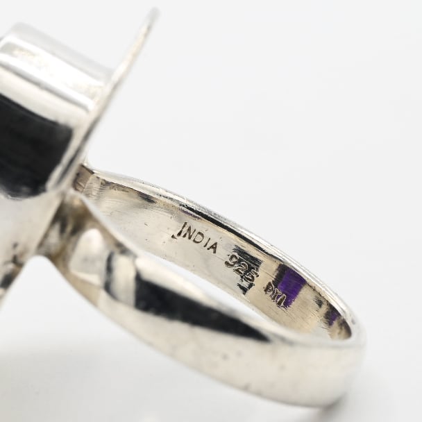 Amethyst Accent Top Chunky Modernist Style Ring #13.5 / India