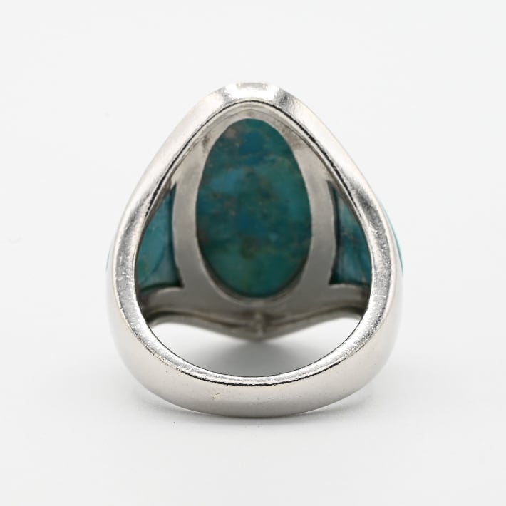 Turquoise Accent Rounded Top Graceful Signet Ring #11.5 / Denmark