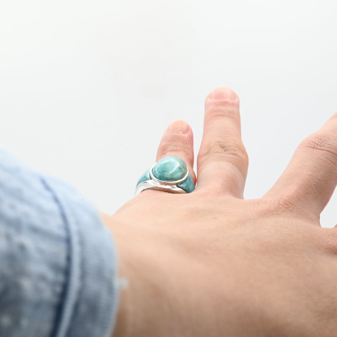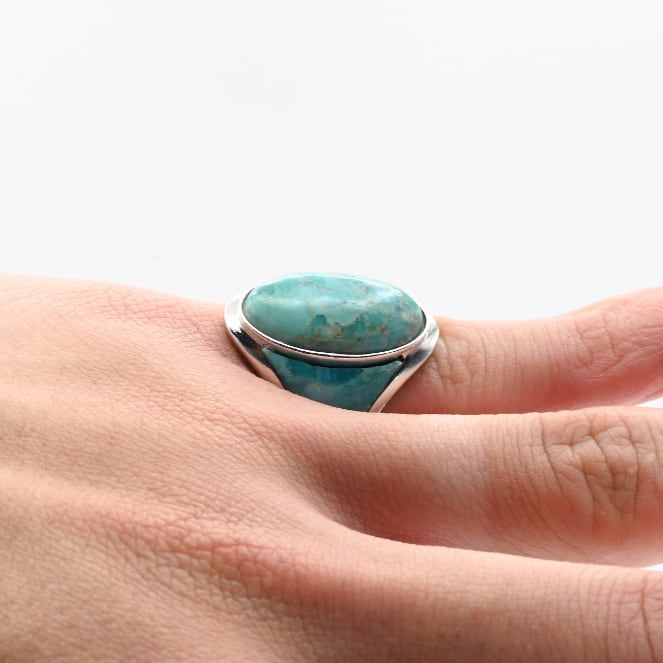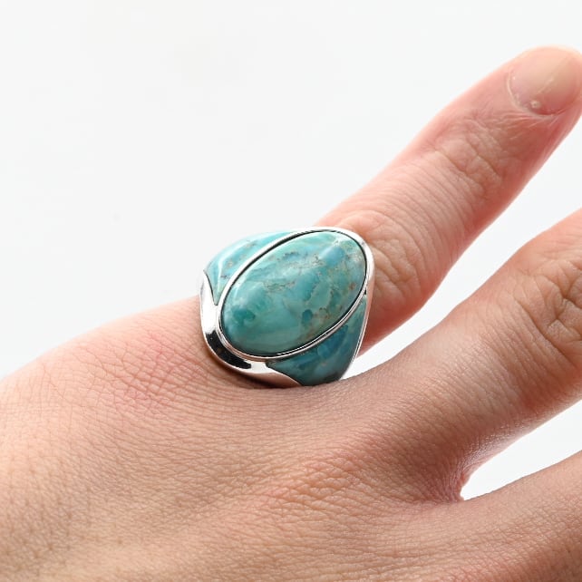 トップとアームの両方に、美しいブルーグリーンの鉱石が嵌め込まれたアイテム。