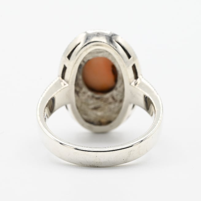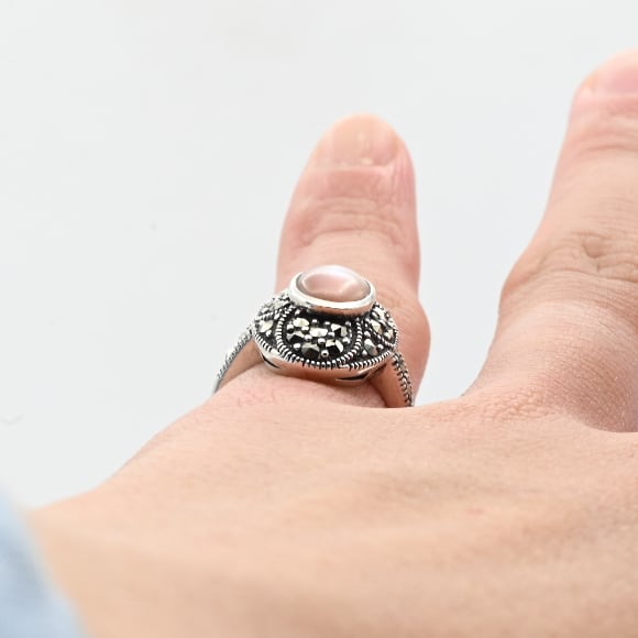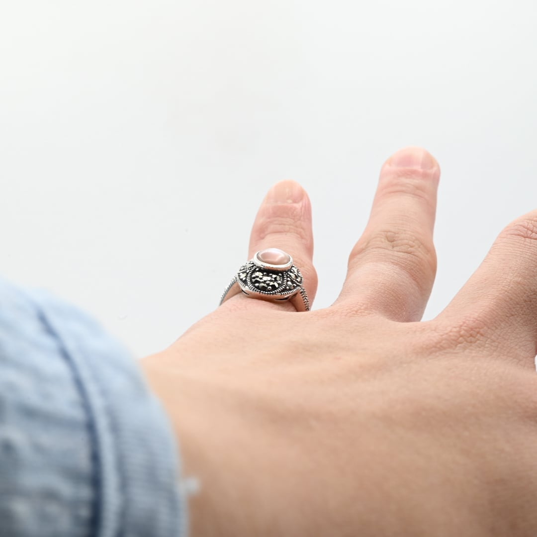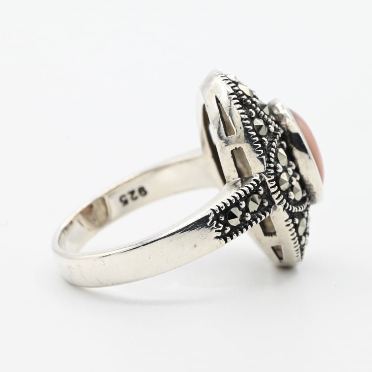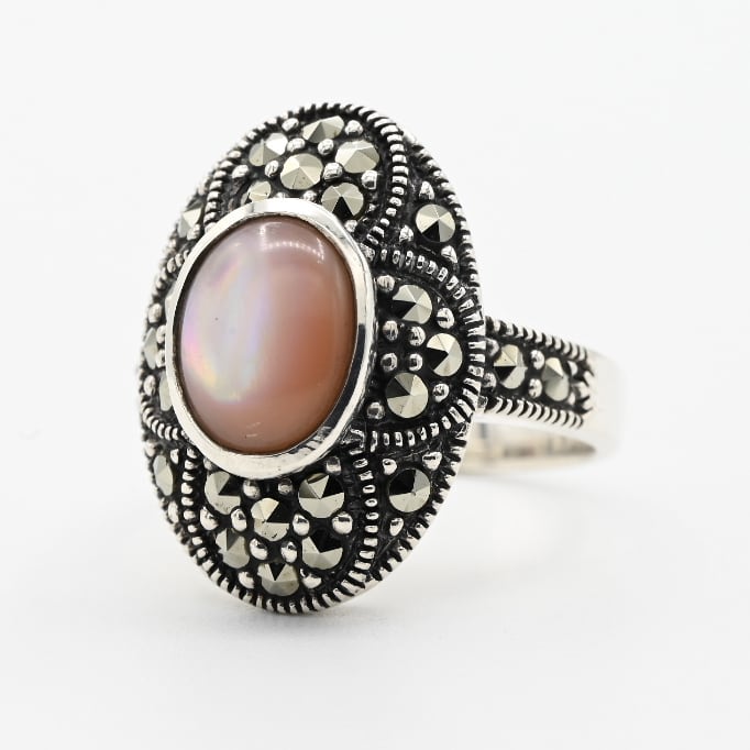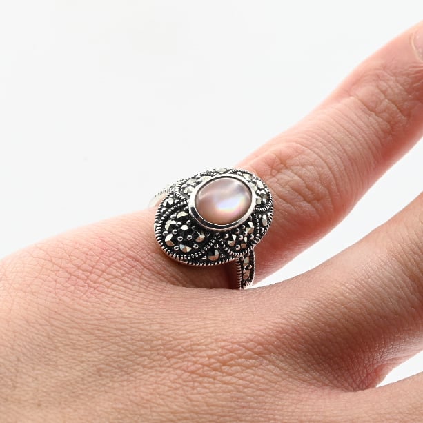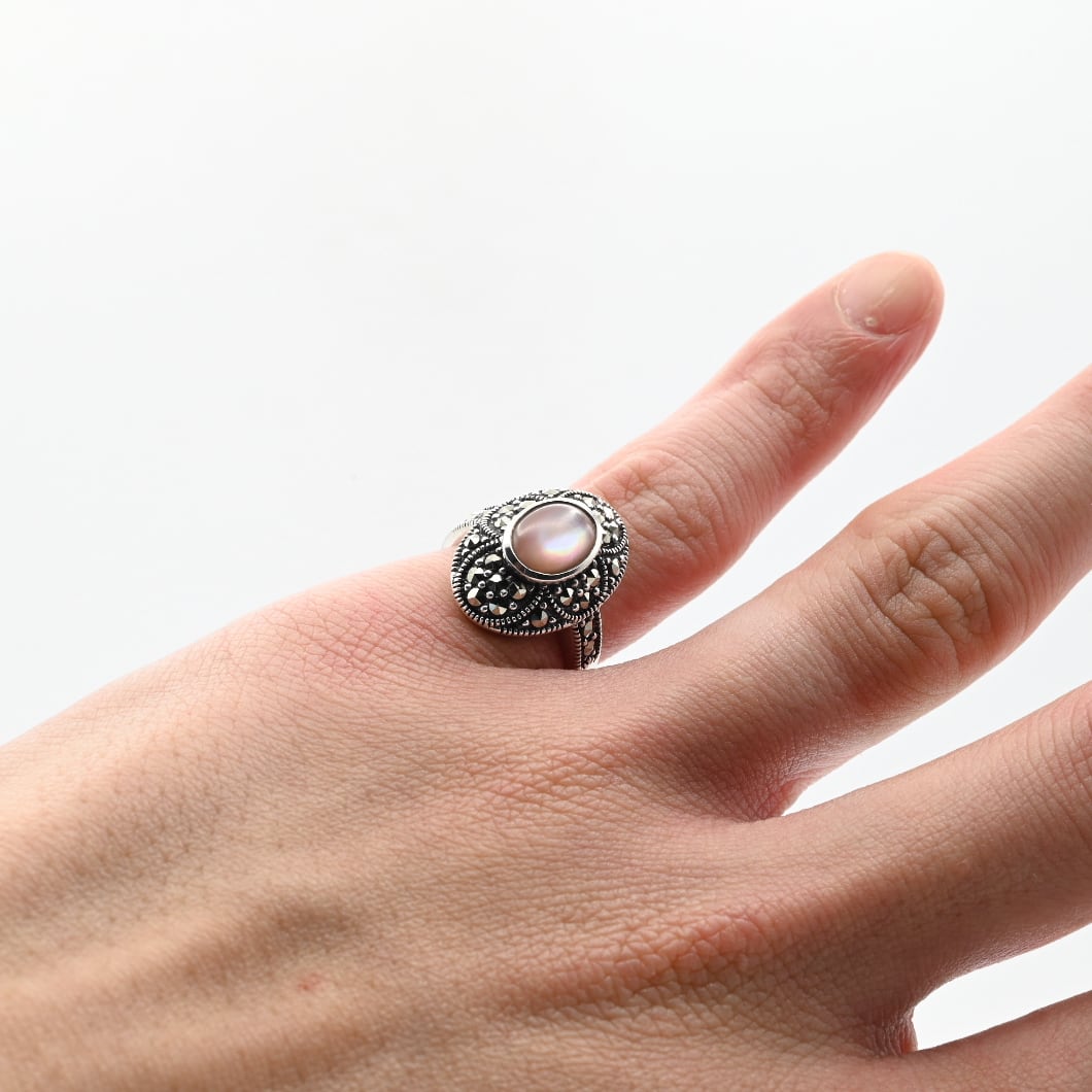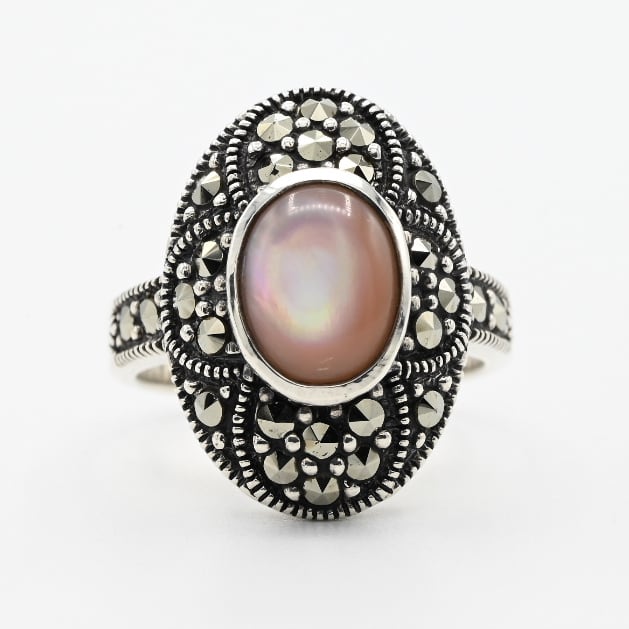 Pink Mother Of Pearl / Marcasite Accent Oval Top Ring #10.5 / Denmark