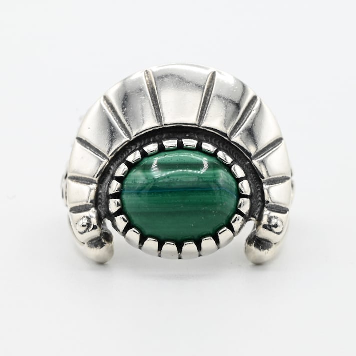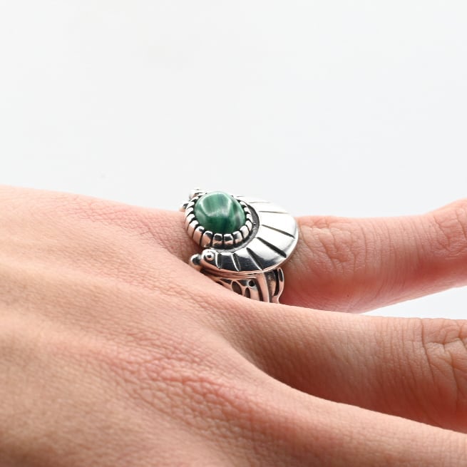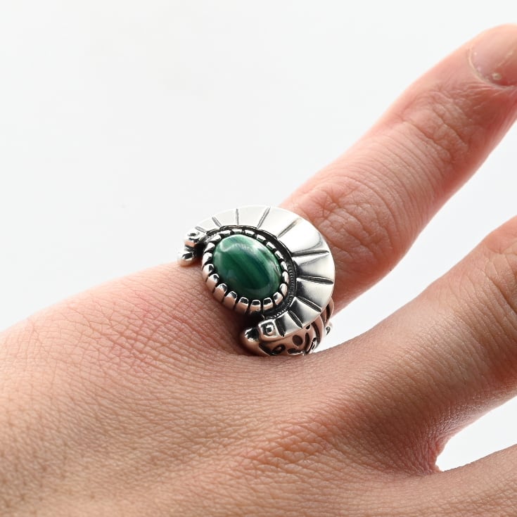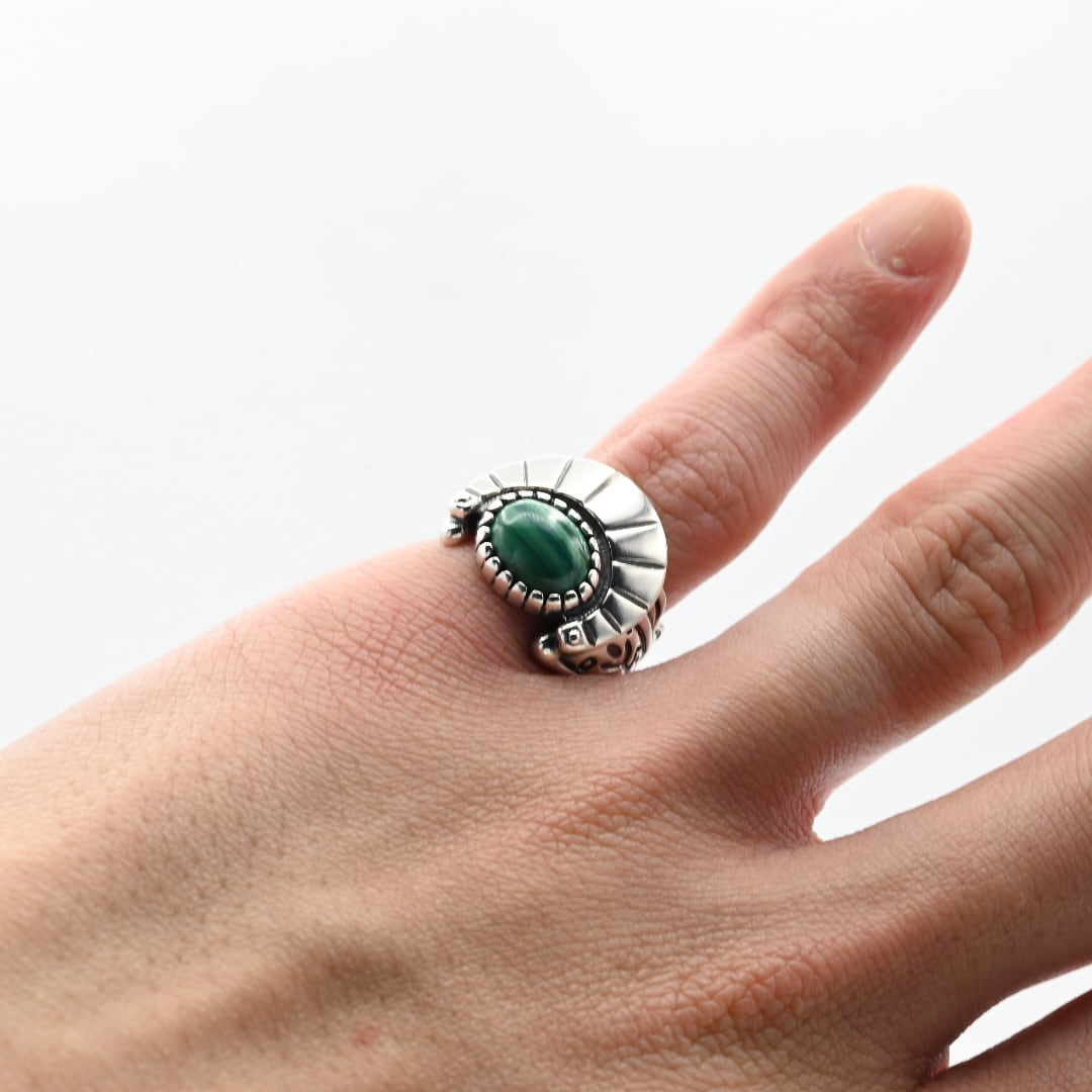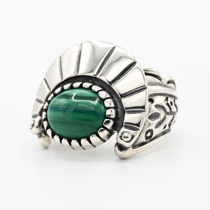Rounded Malachite Top Ornate Design Ring By Carolyn Pollack #11.5 / USA