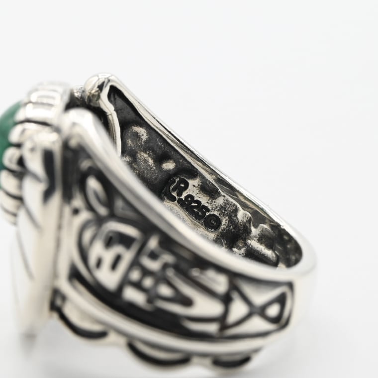 透明感のない深い緑色の色味が特徴の石。古代エジプト時代から愛用され、あのクレオパトラも着用していたと言わている。魔除けや癒し効果、また洞察力を高める効果があるとされる天然石。
