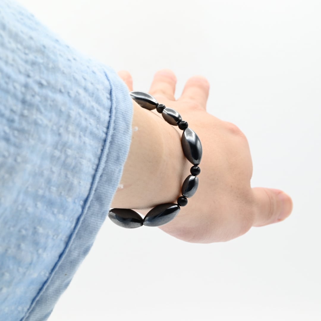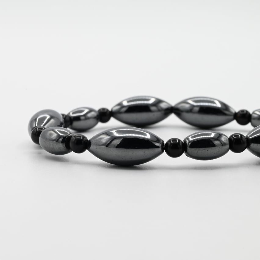 美しい黒灰色が特徴の天然石で、身につける人の血液に力を与え、運動能力を高めたり、疲労を軽減する効果を有するとされる。