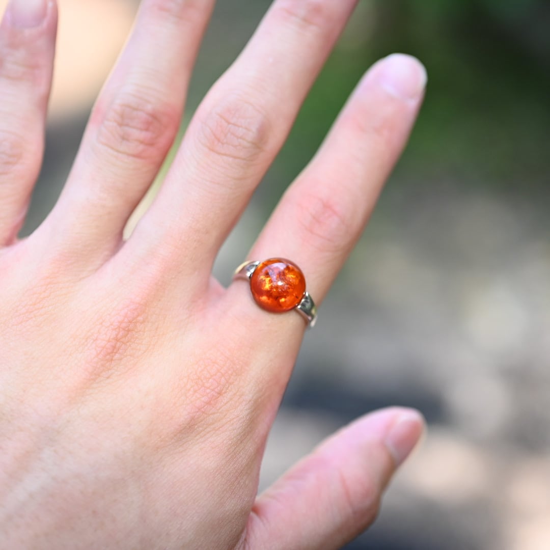1970’s Cabochon Amber Ring By Einer Fehrn #15.5 / Denmark