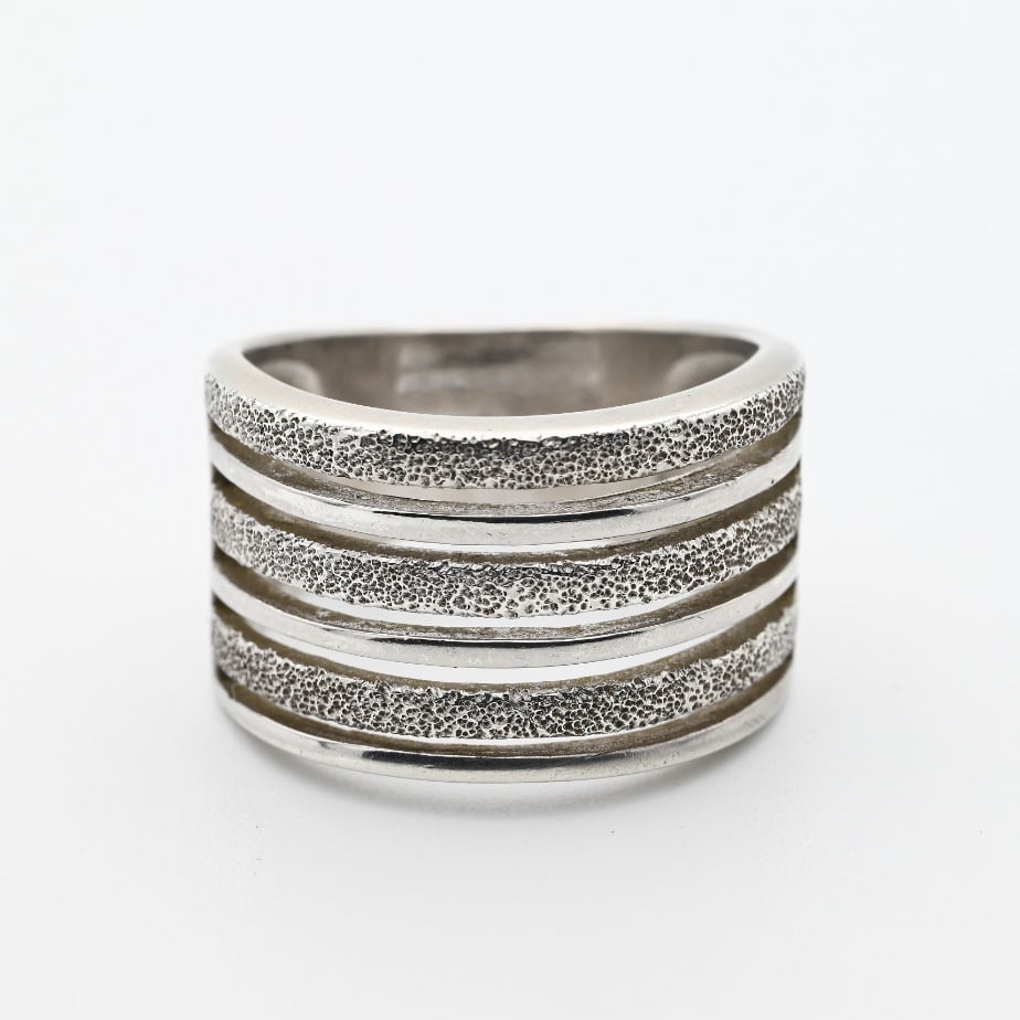 キラキラと細かな光沢が輝く質感と、艶を抑えたマットな質感とを交互に施し、バンドリングながら動きがあるアイテム。