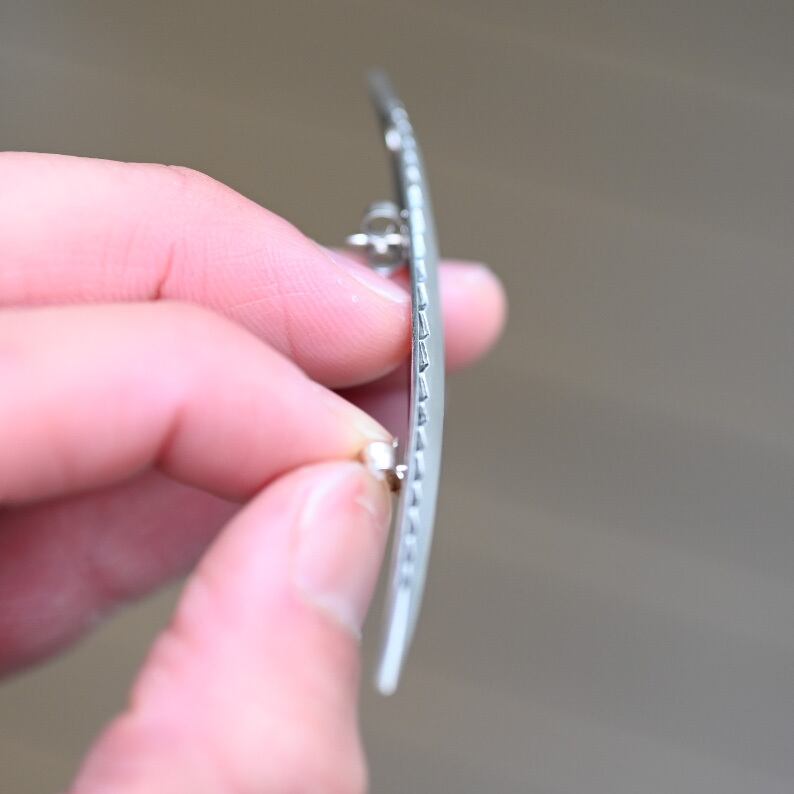 モダンなデザインとやや大ぶりのサイズが特徴のピン(ブローチ)。