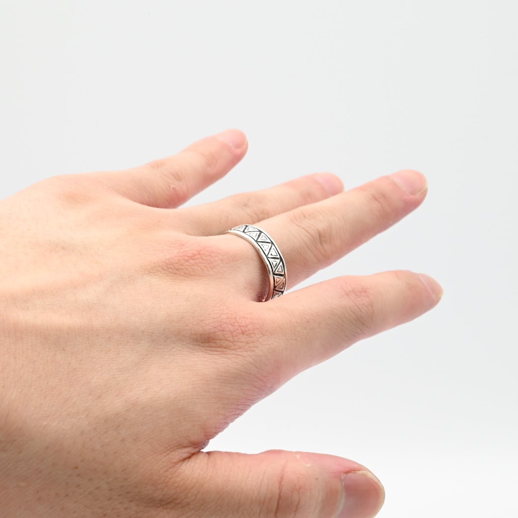 丁寧に刻まれたジグザグ模様が特徴のリング。