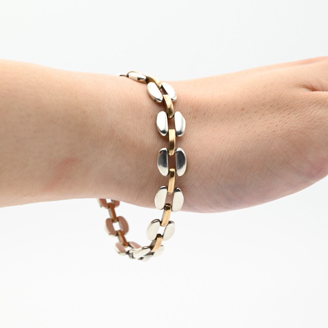 ゴールドとシルバーのコントラストが美しいブレスレット。