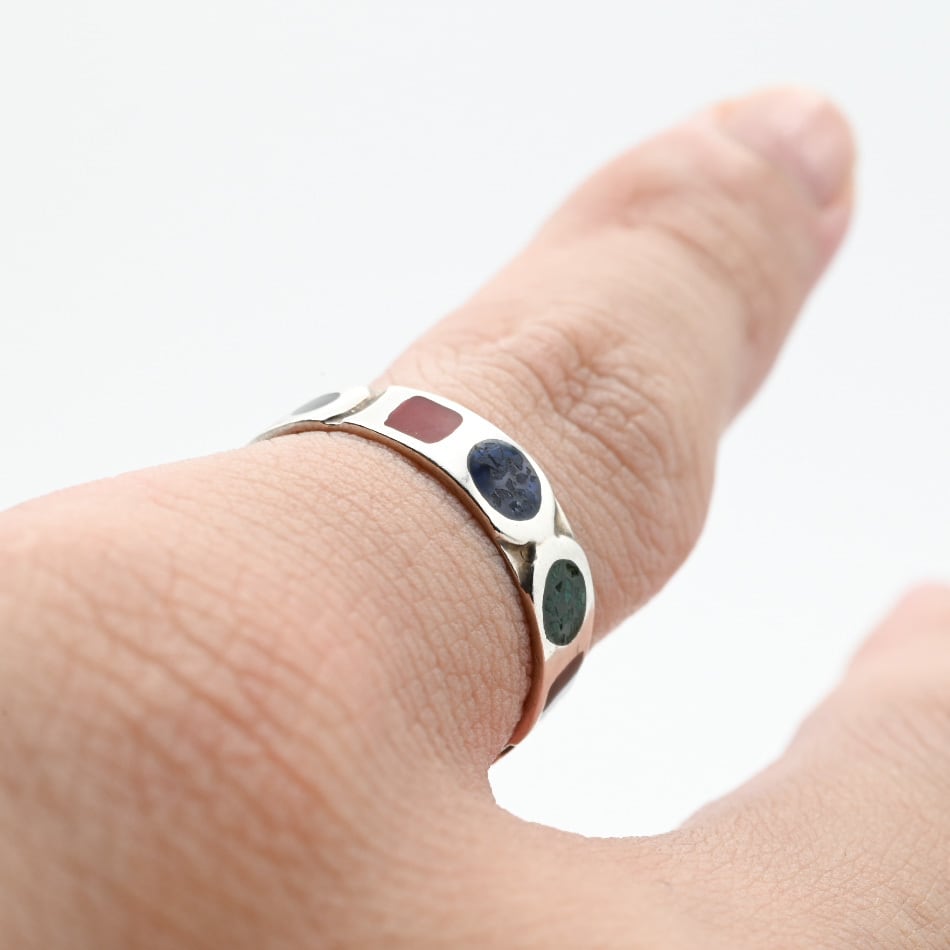 Multi Stone Tapered Thin Ring #9.5 / Mexico