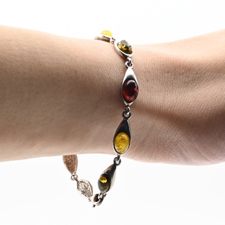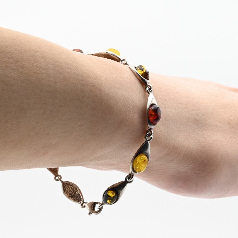 美しい造形とマルチカラーのアンバーが魅力のブレスレット。