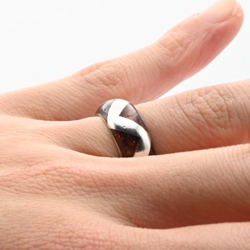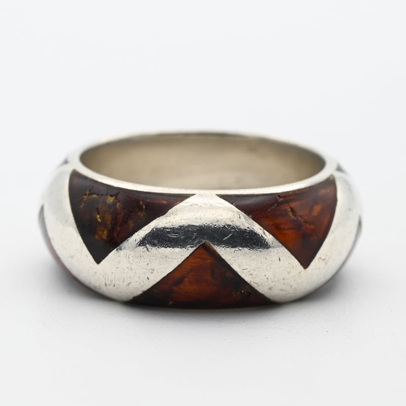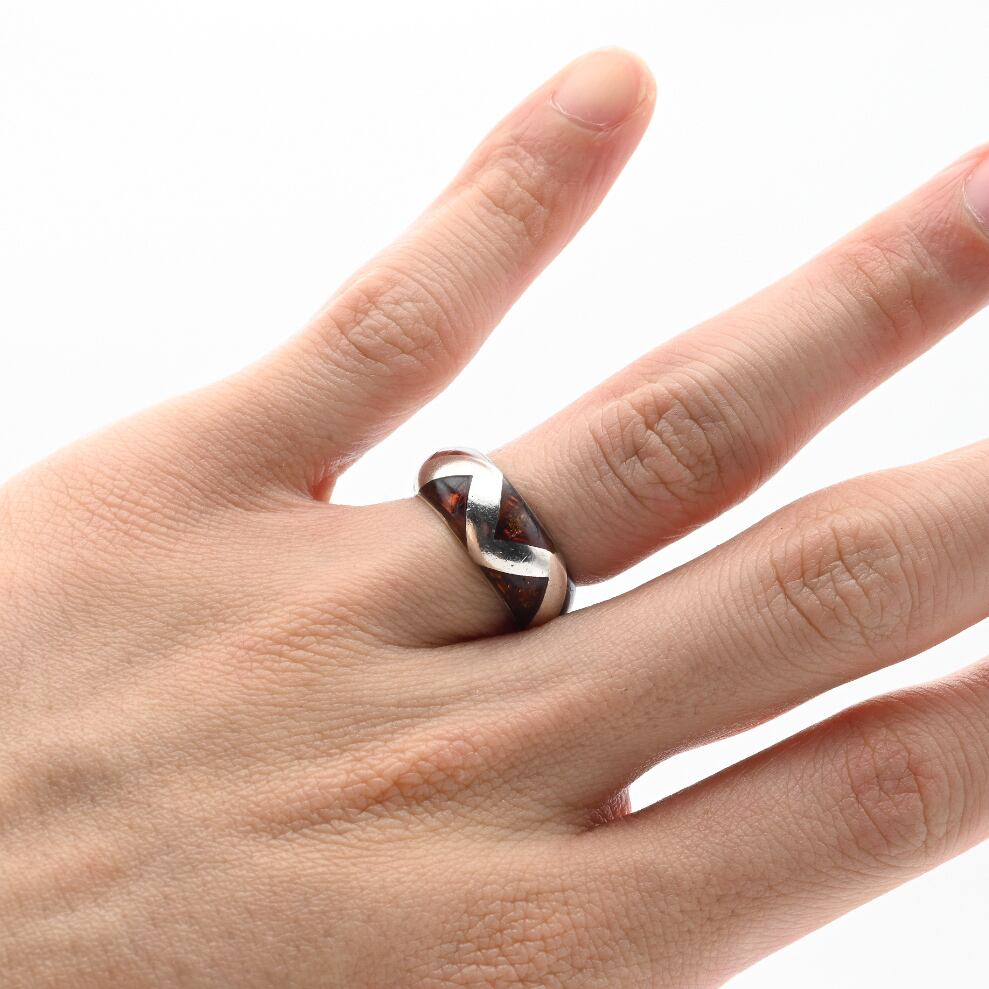 ZIGZAG Design Cherry Amber Inlay Ring #12.5 / Denmark