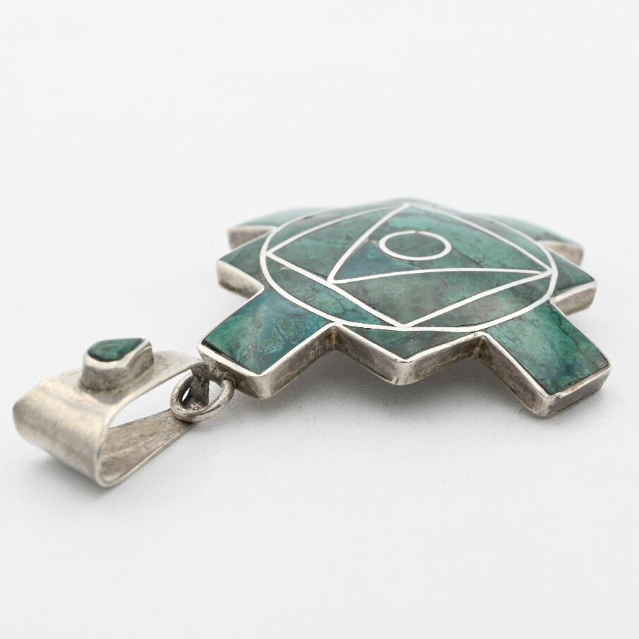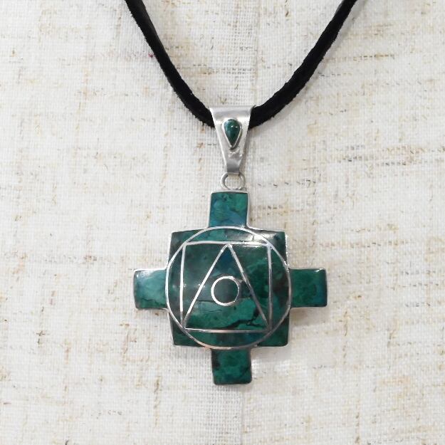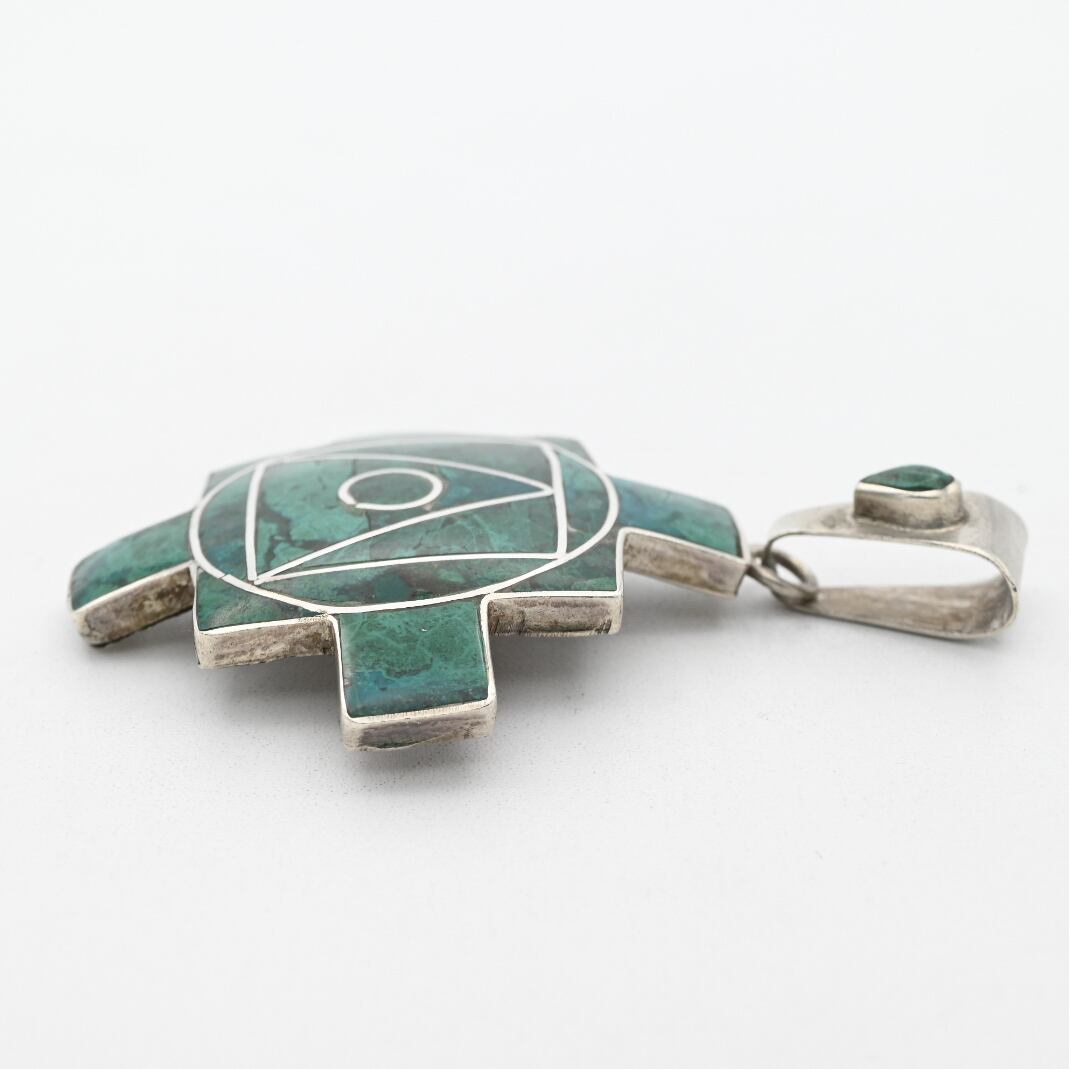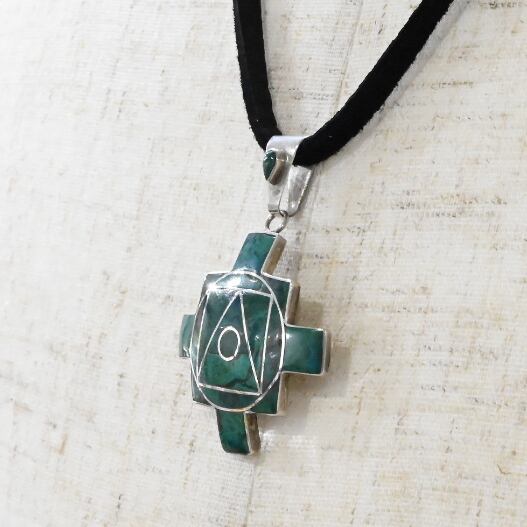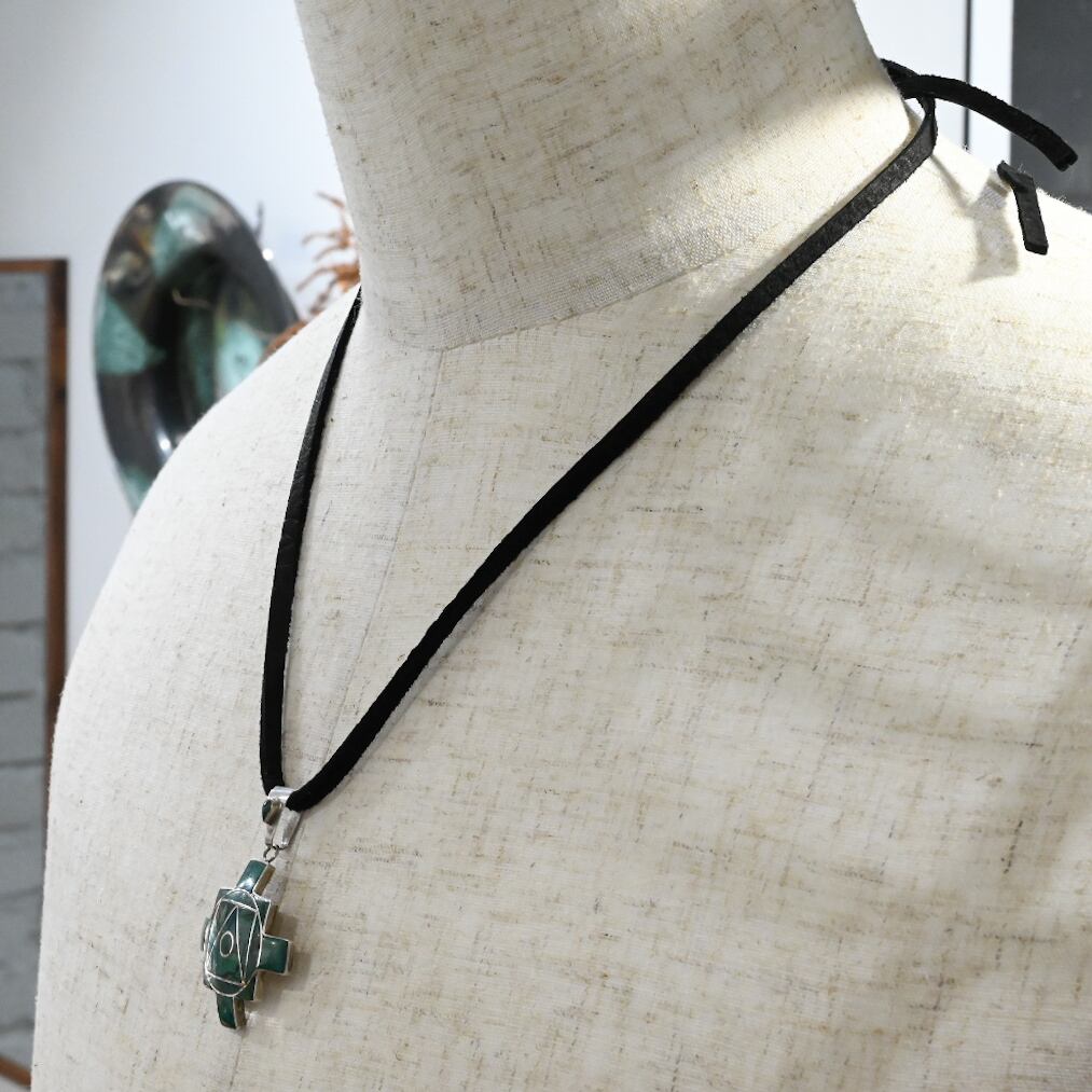 Chrysocolla Inlay Abstract Design Pendant Top With Deer Leather Strap / Denmark