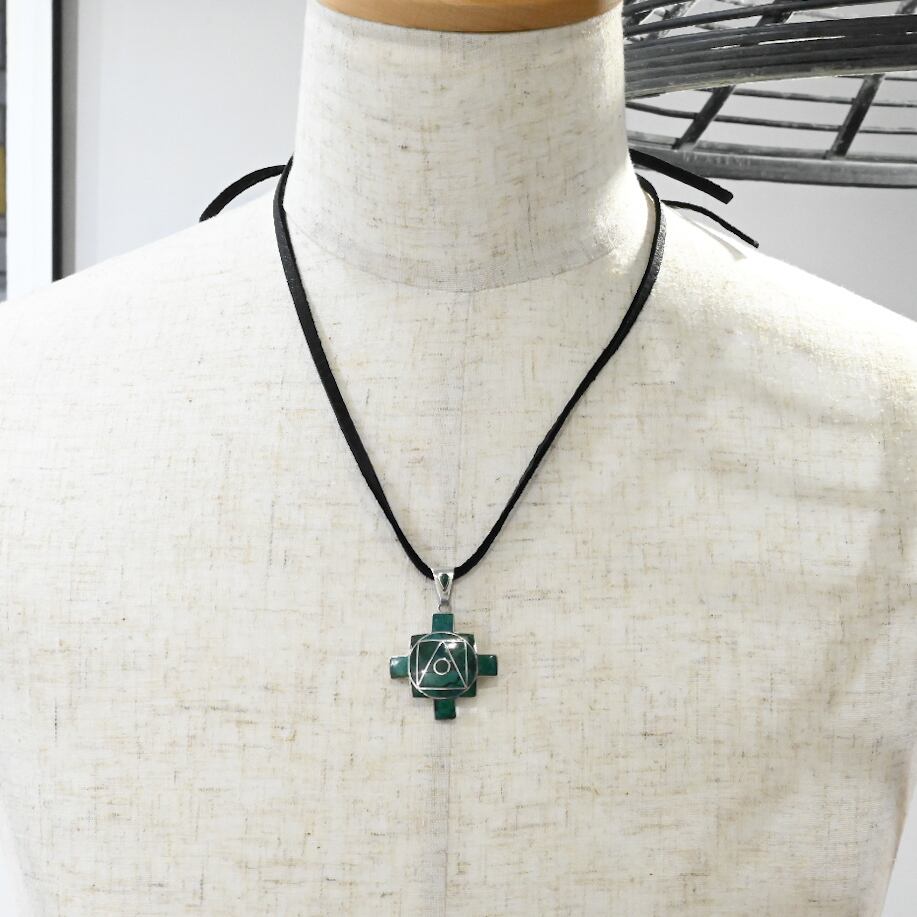 洗練されたデザインと深緑のカラーリングがマッチしたペンダントトップ。