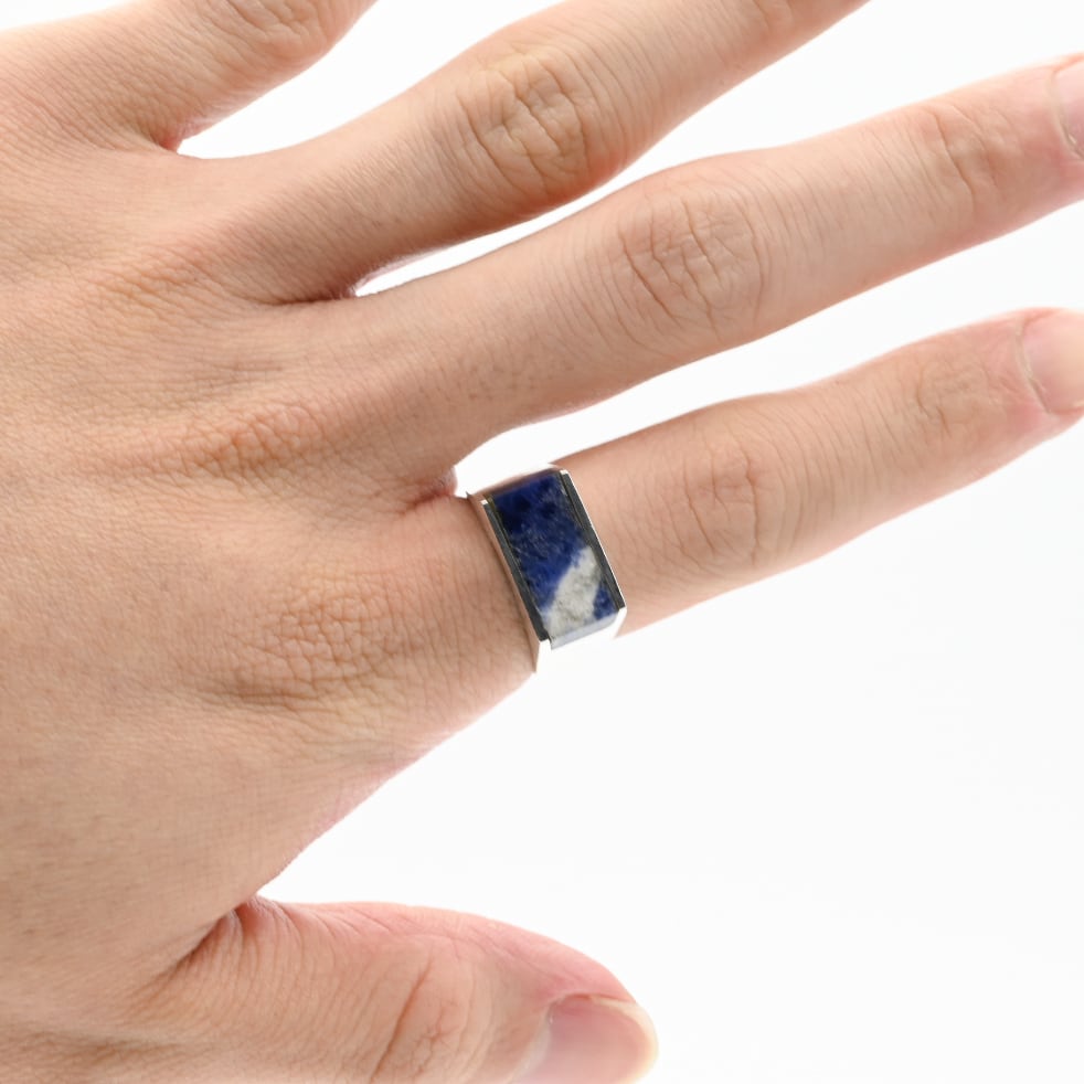 Sodalite Inlay Square Top Ring #17.5 / Mexico
