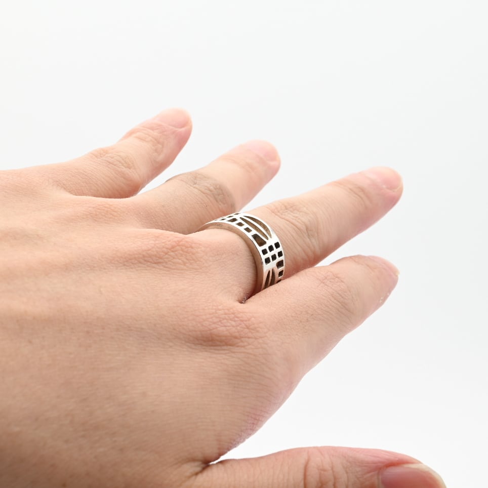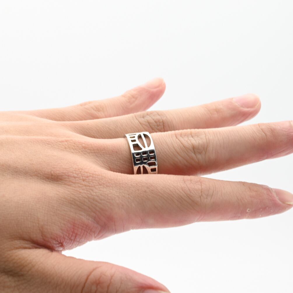 ダイナミックな透かしデザインが特徴のリング。