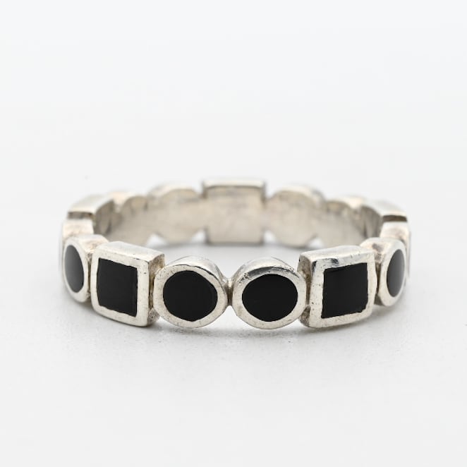 Various Shape Black Onyx Inlay Around The Circle Ring #15.5 / Denmark