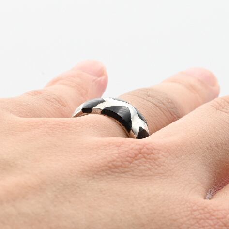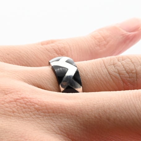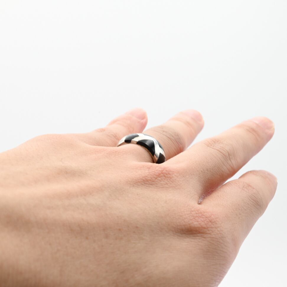 ZIGZAG Design Black Onyx Inlay Ring #13.0 / USA