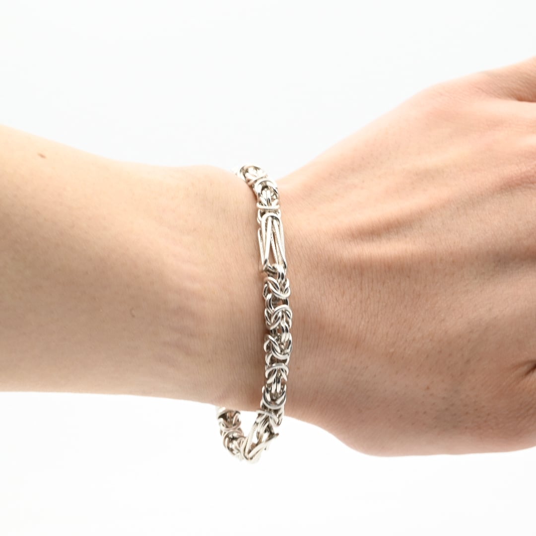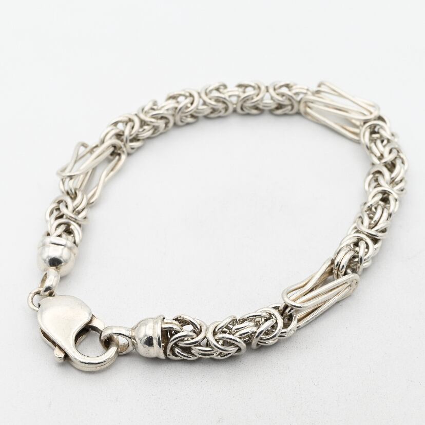 緻密なパーツの組み合わせによって形成されたブレスレット。