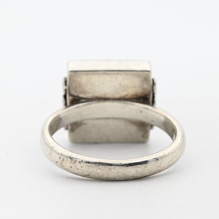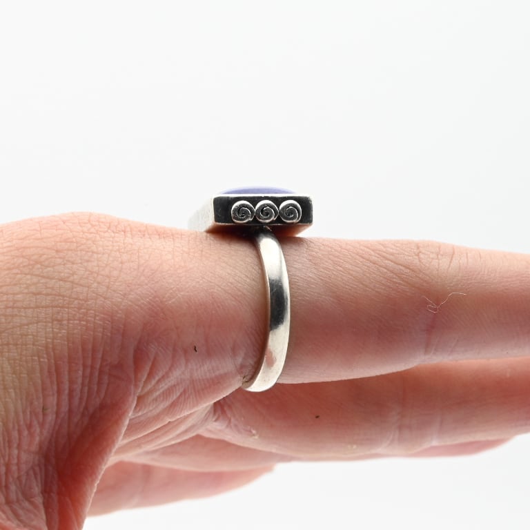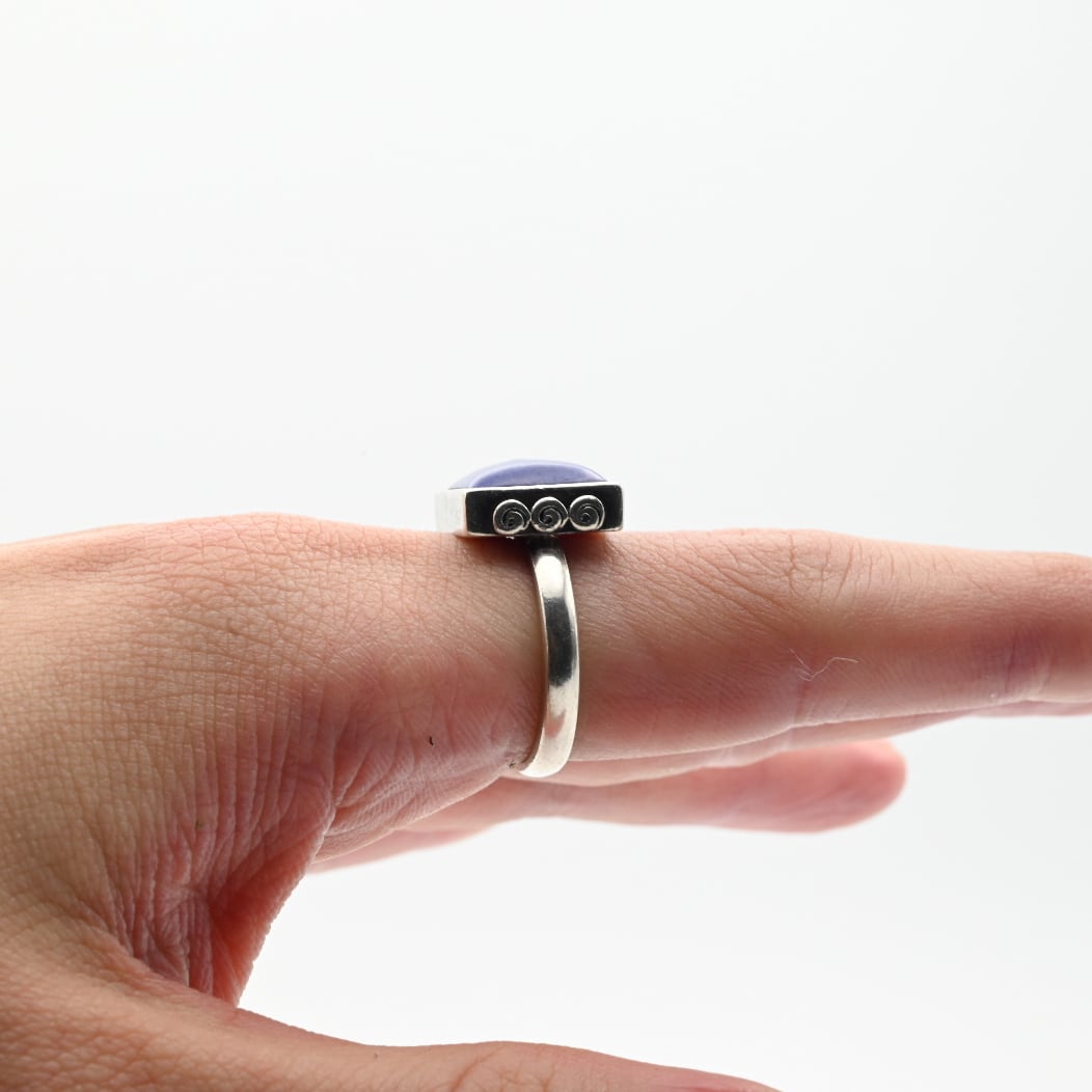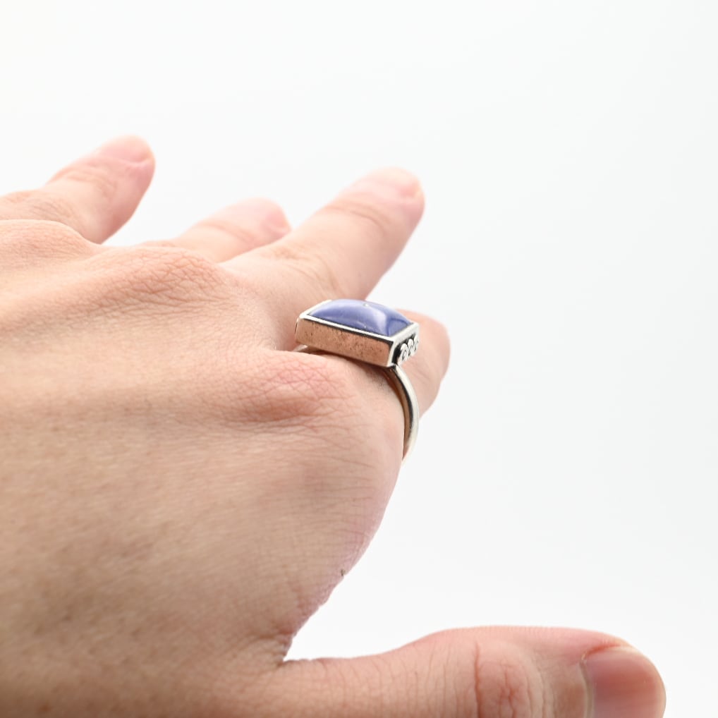 シックな煌めきのネイビーストーンをトップに配したリング。