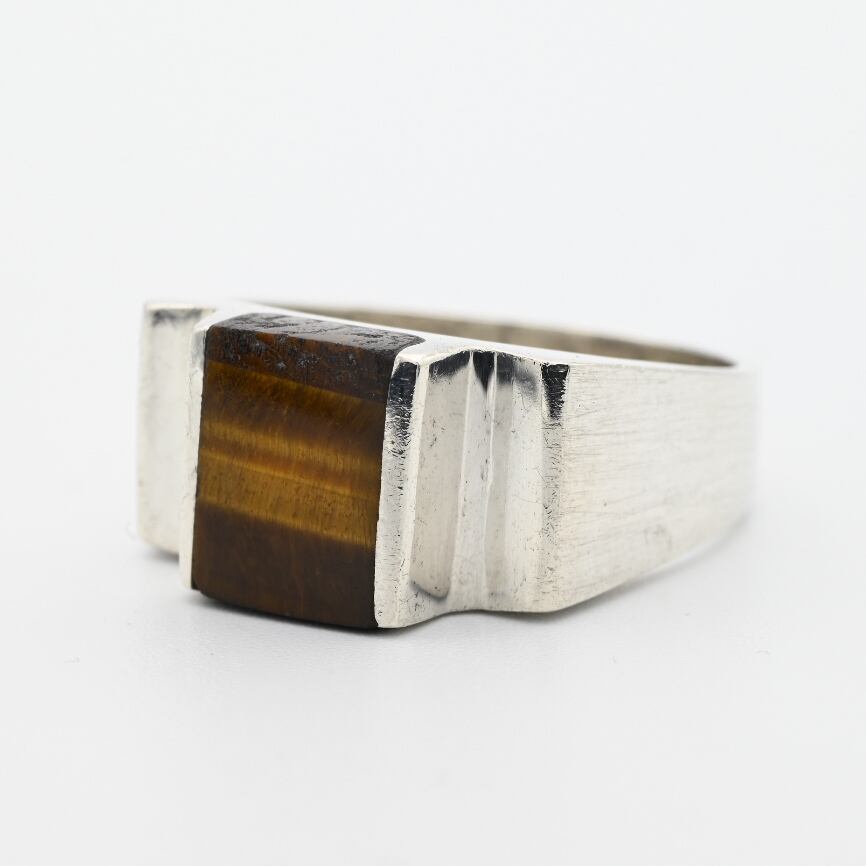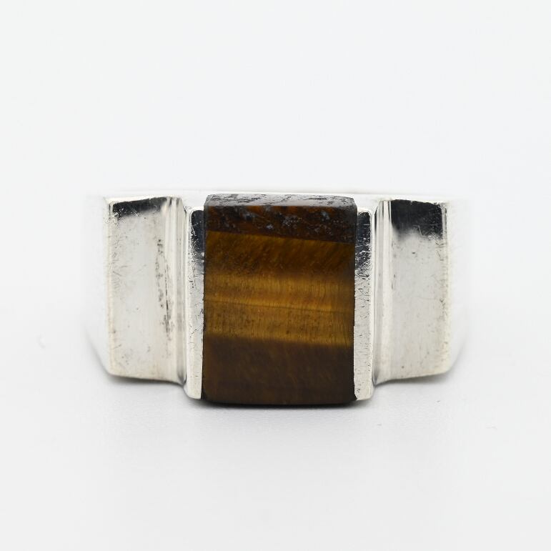 Tiger Eye Inlay Top Chunky Square Design Ring #18.5 / Mexico