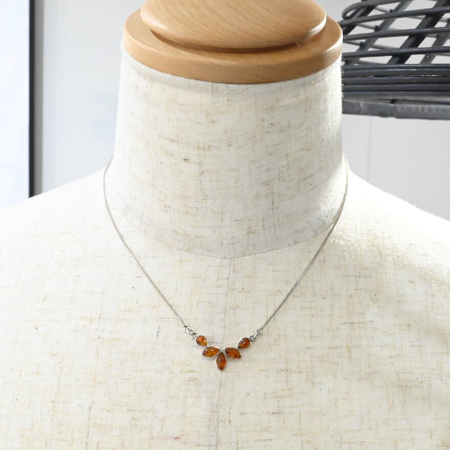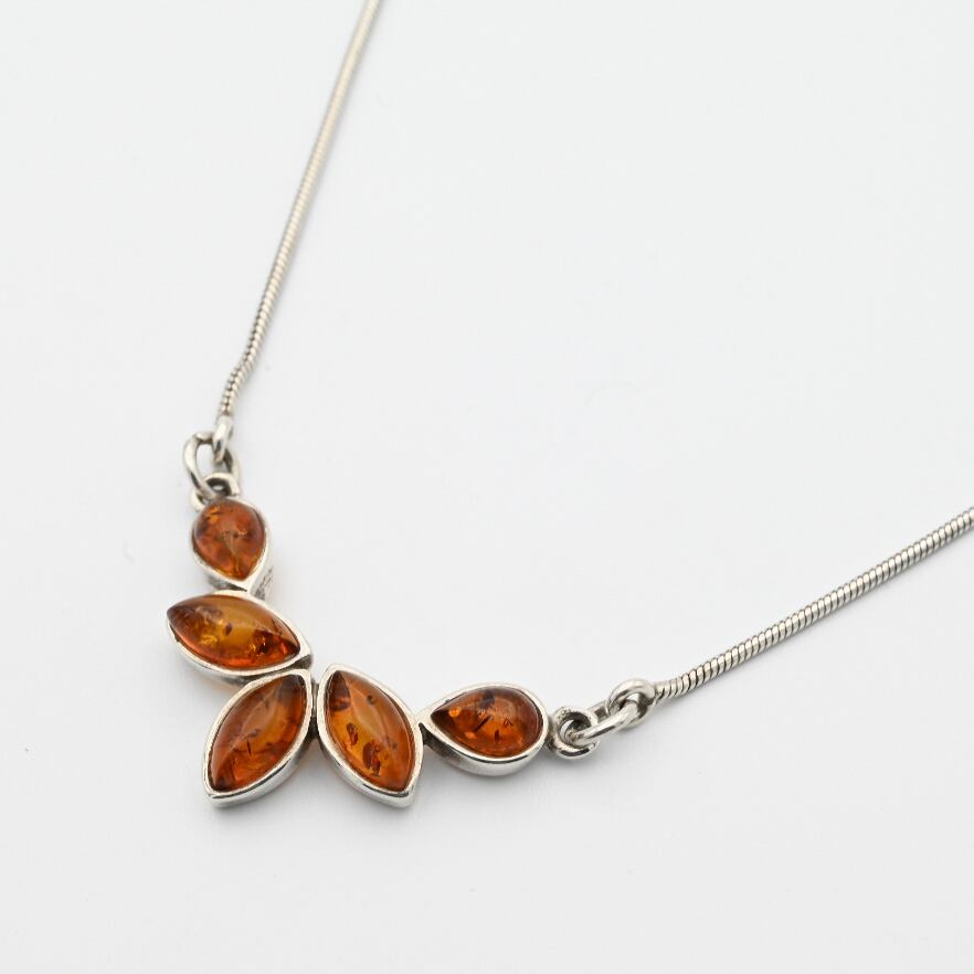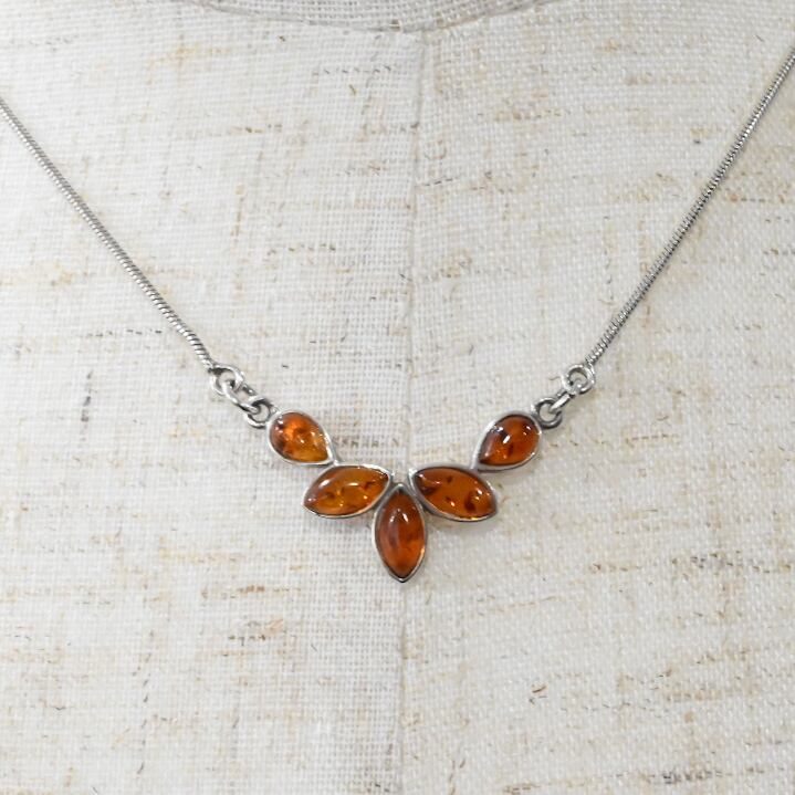 Sophisticated Design Amber Top Silver Chain Necklace / Denmark